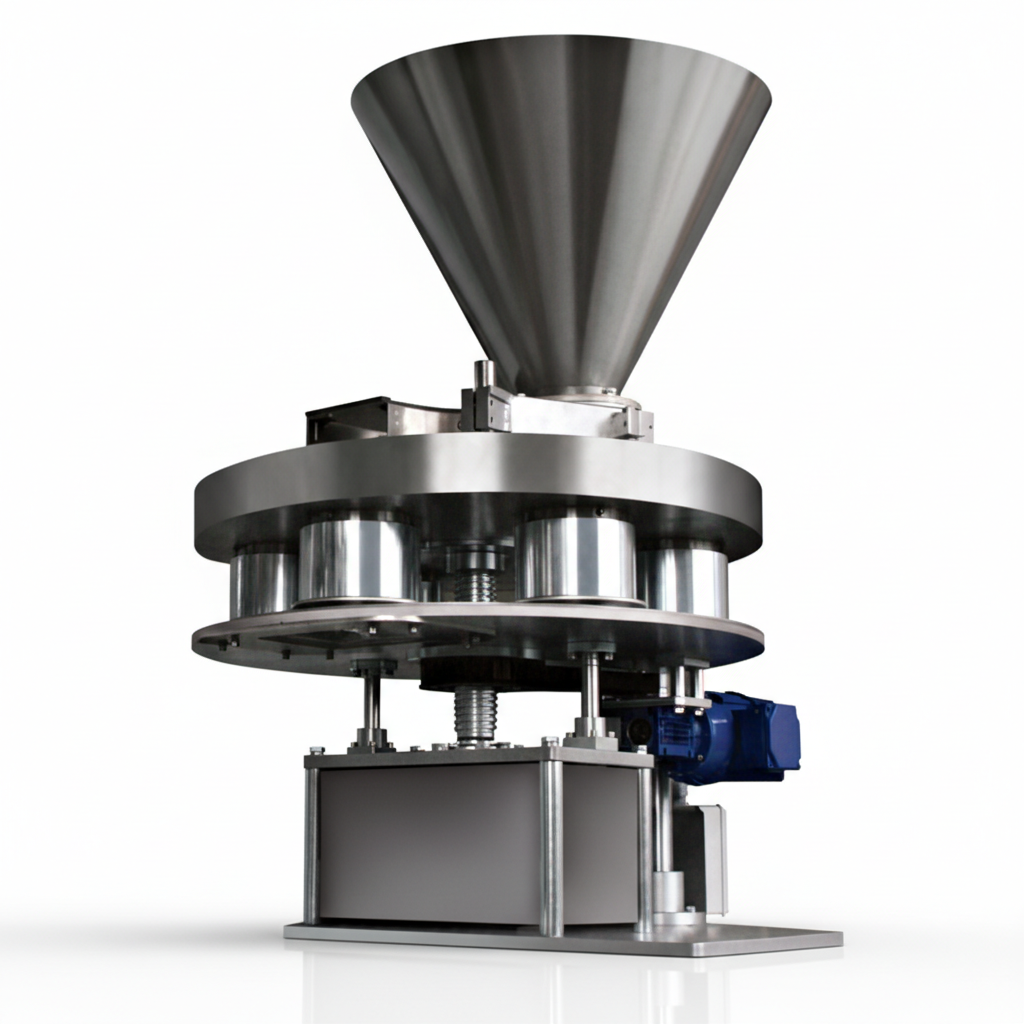 The FILL R-VF Series is a volumetric filling system developed for the fast and consistent dosing of free-flowing products before packaging. Designed to operate in full synchronization with packaging machines, this rotary structure works on a volume-based measurement principle rather than weight, delivering stable fill quantities even at high production speeds.