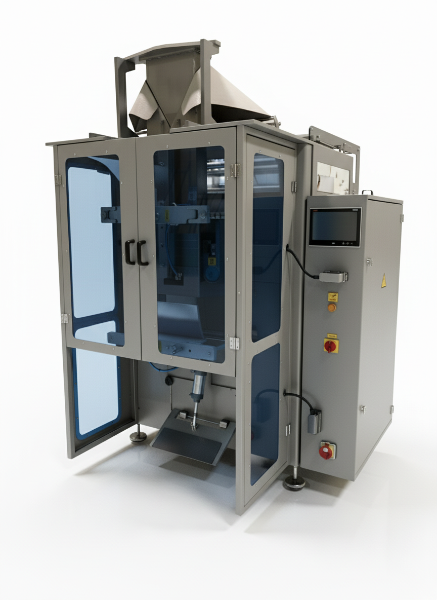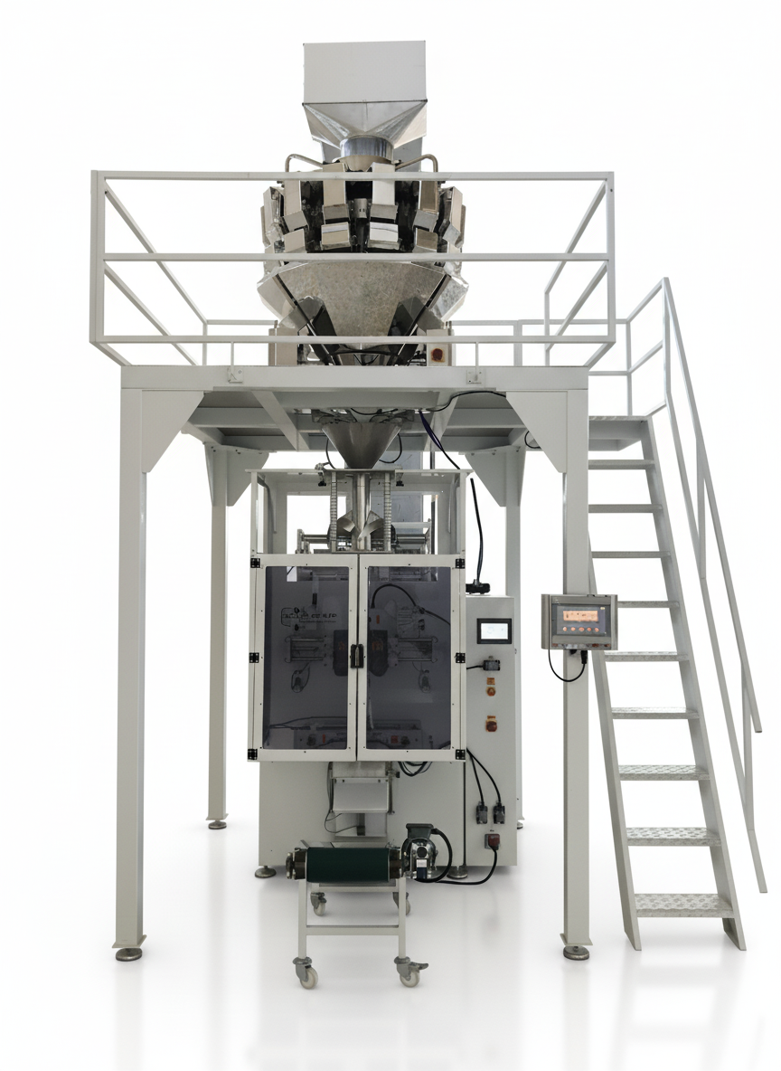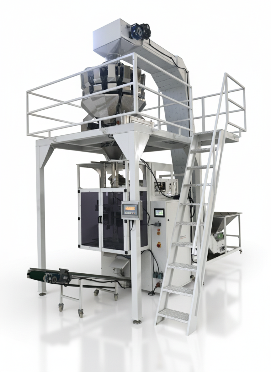 The machine is designed to operate in synchronization with Multihead Weighers, Linear Weighers, volumetric filling systems, and auger dosing units. This integration provides accurate weight control across different product structures.