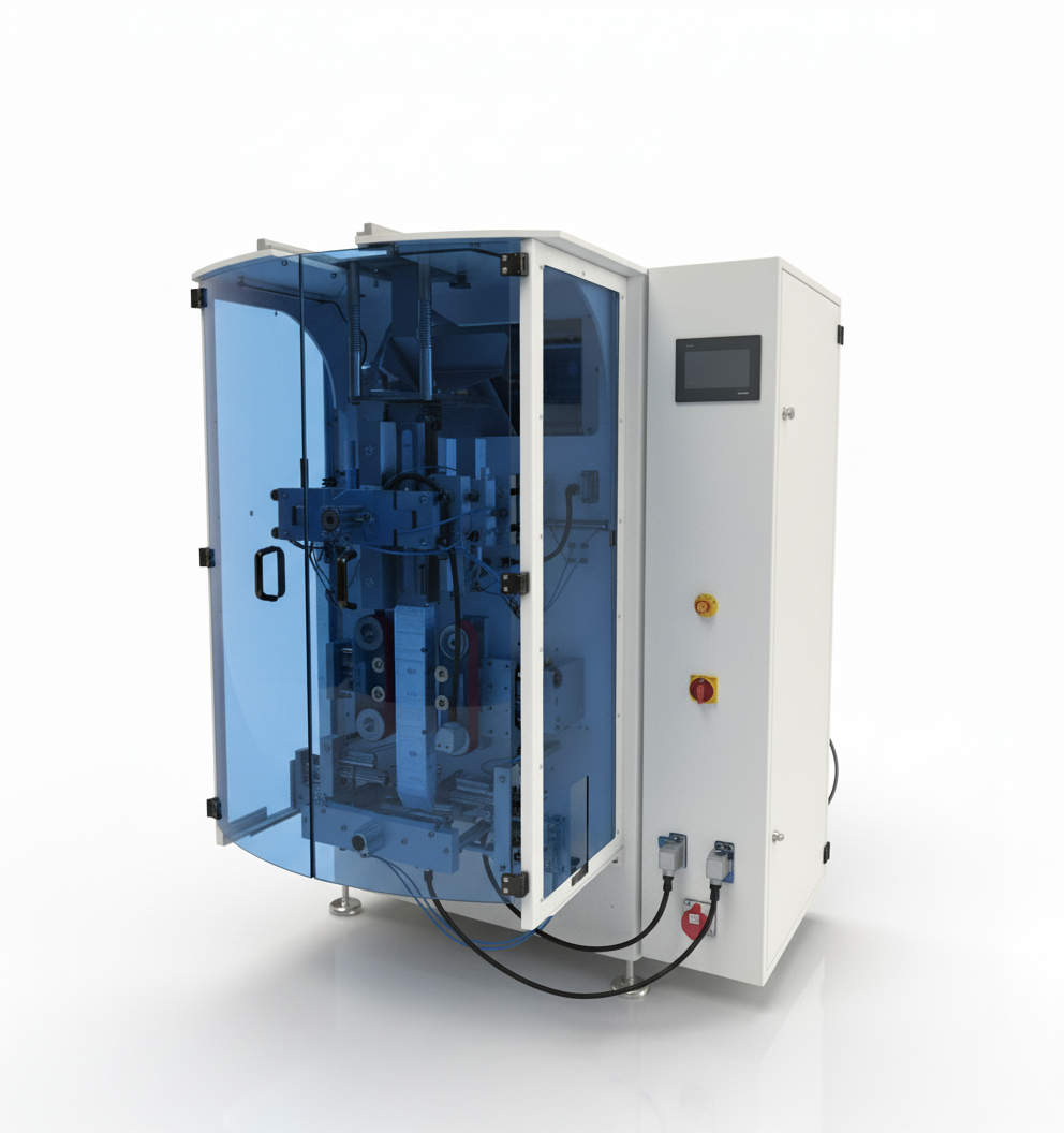 All main movements of the machine are controlled by independent servo motors and synchronized through the Motion Controller infrastructure. This architecture provides millisecond-level precision in the packaging cycle, ensuring stable package form and accurate timing even at high speeds.