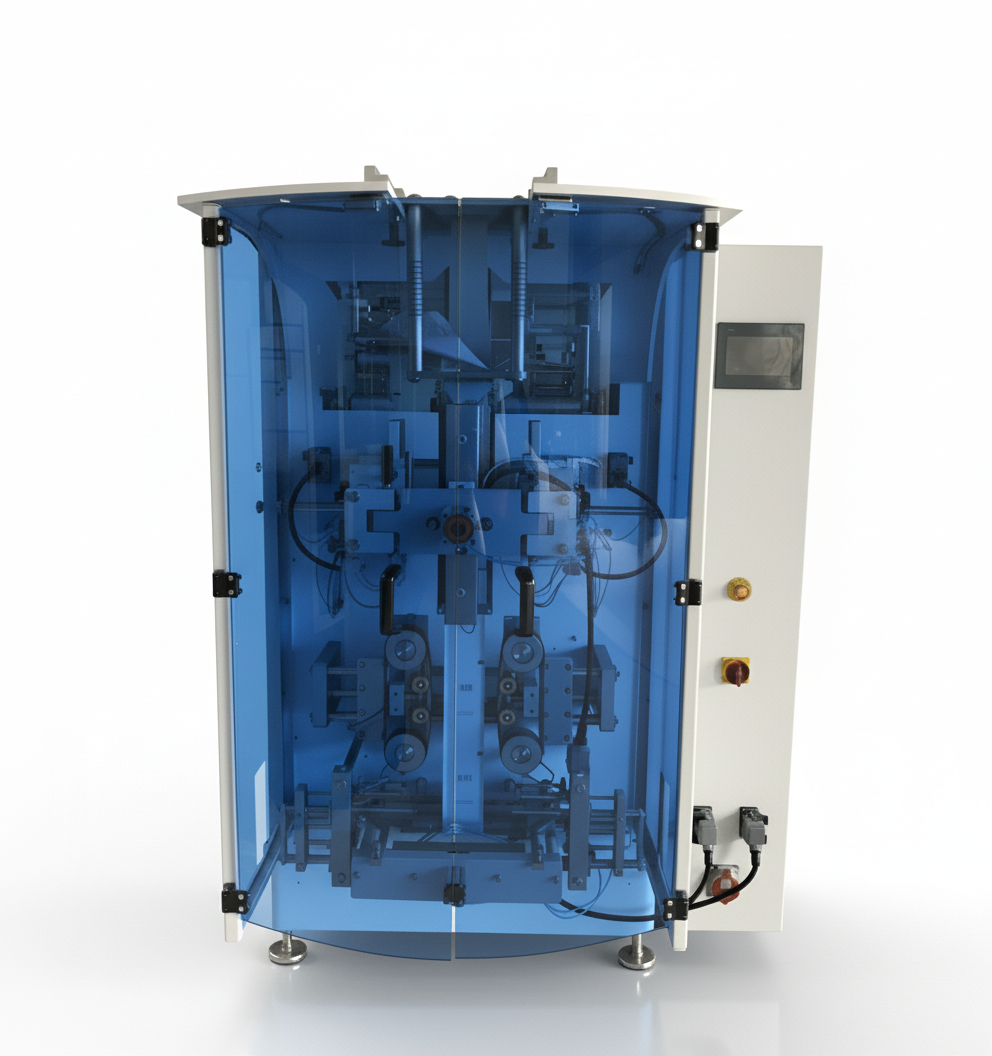 The collar forming system, servo-controlled horizontal jaw mechanism, and pneumatic sealing jaws are coordinated by the machine software with millisecond-level precision. This synchronization preserves package form even at high speeds.